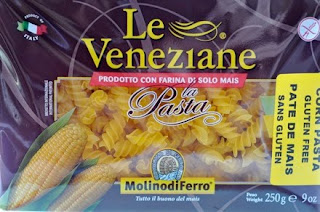 Il y a quelques semaines, mon amoureux est arrivé à la maison avec de nouveaux produits sans gluten achetés à l'épicerie. Dans son sac, j'ai trouvé un paquet de pâtes alimentaires sans gluten au maïs Le veneziane de la compagnie italienne Molino di Ferro.